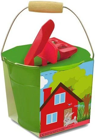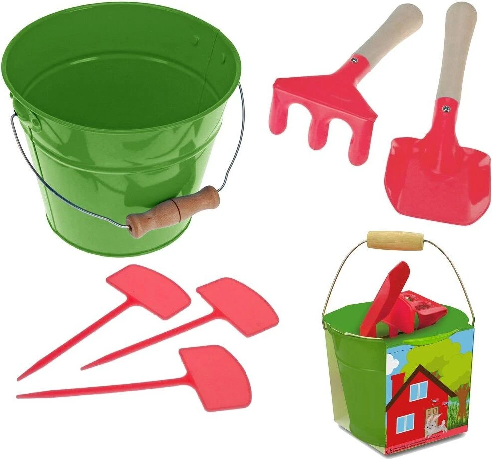 Emmertje met harkje, schepje en plantlabels. Hiermee kunnen kinderen aan de slag in hun eigen groentetuin maar ook leuk in de zandbak!