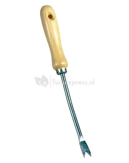 Onkruidsteker welke geschikt is voor het verwijderen van onkruid uit bijvoorbeeld uw potten en bloembakken. Doordat de handonkruidsteker gemaakt is van verzinkt staal zal deze minder snel gaan roesten en heeft deze dus een langere levensduur. De handonkruidsteker is bovendien voorzien van een gewaxt houten handvat, wat ervoor zorgt dat het hout kan ademen en geen water en vuil zal opnemen.