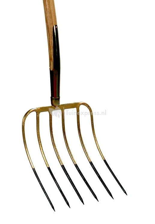 Mestvork 6 tanden houten steel 85 cm met T-greep en stift verbinding