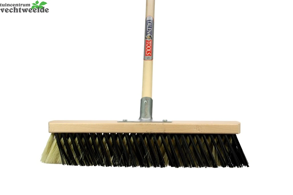 Deze X-bezem met cocos haren is geschikt voor binnen. Deze bezem is ideaal voor het verwijderen van droog en fijn vuil op gladde vloeren zoals tegels en beton. De haren van deze bezem zijn dun en zacht zodat er geen krassen op de vloer kunnen komen. De bezem is voorzien van een steel van 150cm. Ter ondersteuning is de steel met een verstevigingsbeugel aan de bezem gemonteerd. Doordat de rijen met haren in deze bezem niet recht maar schuin achter elkaar staan, krijgt u een veel beter veegresultaat. Deze bezem is 40cm breed. Zet na gebruik de bezem niet met de haren op de grond. U kunt hem beter ophangen of met de steel op de grond zetten. Als u de bezem wel met de haren op de grond zet, heeft u kans dat de haren krom gaan staan en het gebruik niet meer optimaal is.