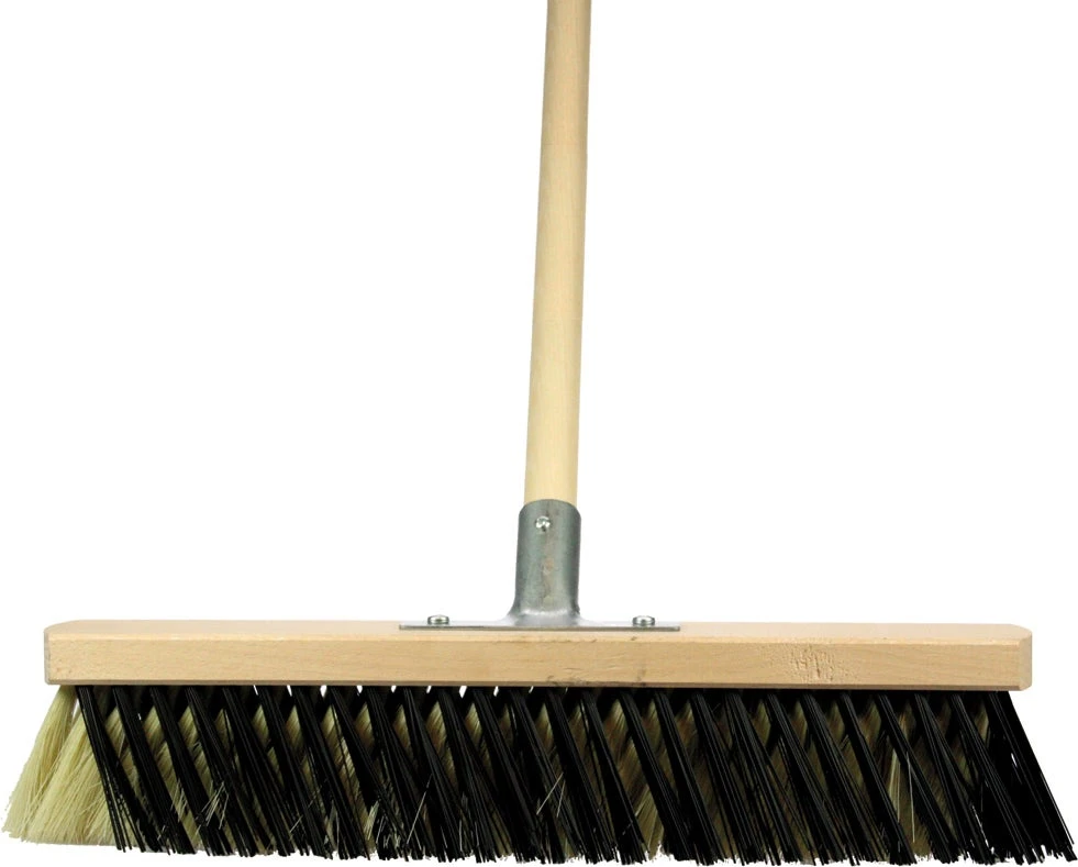 Deze X-bezem met cocos haren is geschikt voor binnen. Deze bezem is ideaal voor het verwijderen van droog en fijn vuil op gladde vloeren zoals tegels en beton. De haren van deze bezem zijn dun en zacht zodat er geen krassen op de vloer kunnen komen. De bezem is voorzien van een steel van 150 cm. Ter ondersteuning is de steel met een verstevigingsbeugel aan de bezem gemonteerd. Doordat de rijen met haren in deze bezem niet recht maar schuin achter elkaar staan, krijg je een veel beter veegresultaat. Deze bezem is 40 cm breed. Zet na gebruik de bezem niet met de haren op de grond. Je kunt hem beter ophangen of met de steel op de grond zetten. Als je de bezem wel met de haren op de grond zet, heb je kans dat de haren krom gaan staan en het gebruik niet meer optimaal is.